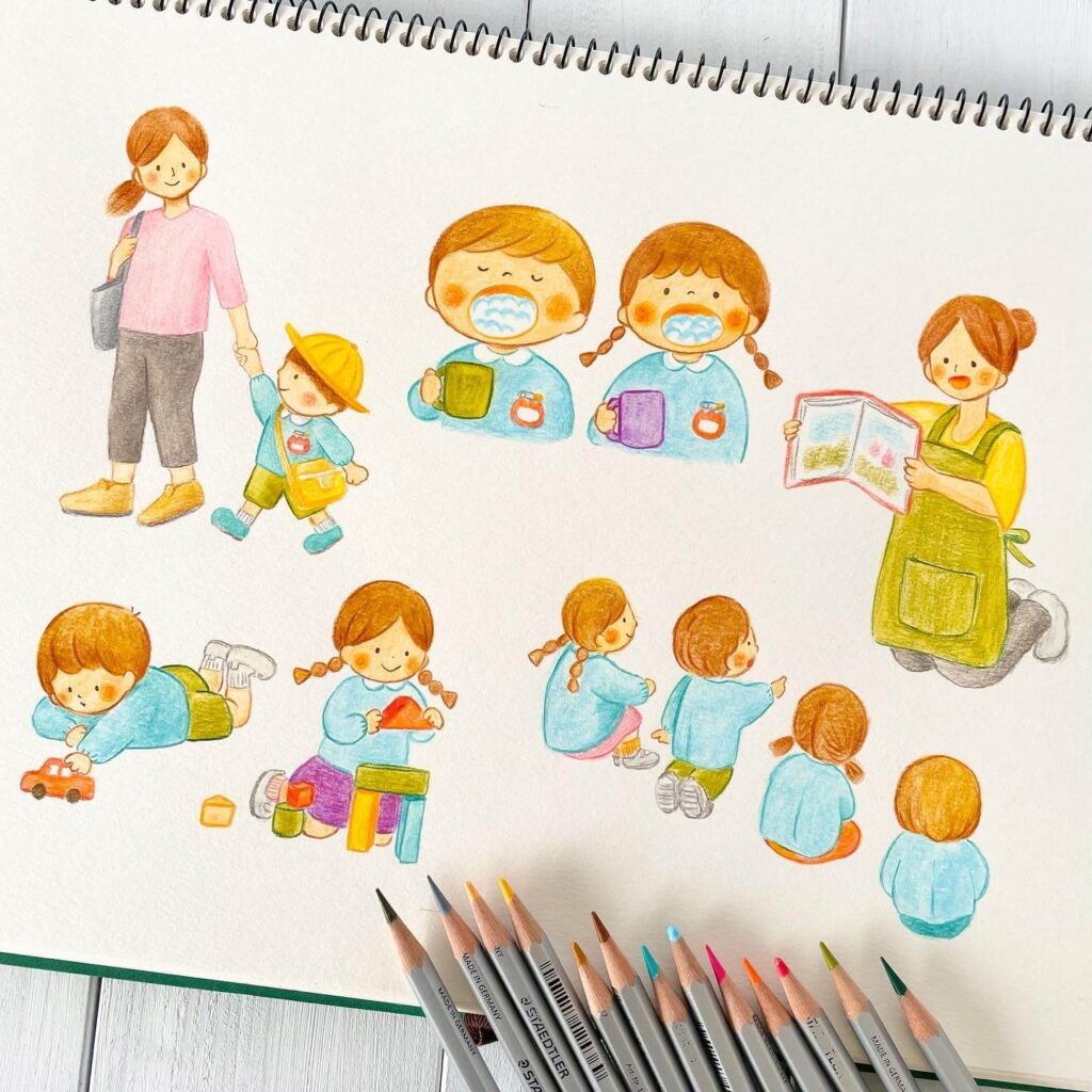 そんなまだまだ先だと思っていたクリエポまであと2ヶ月。まだまだ実績の浅いtorisunなのでサンプルを仕上げる毎日です。先日は保育雑誌のカットを想定して描いてみました。