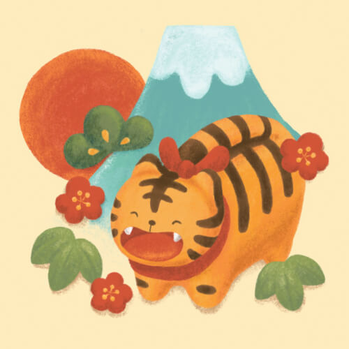 笑う寅と初日の出