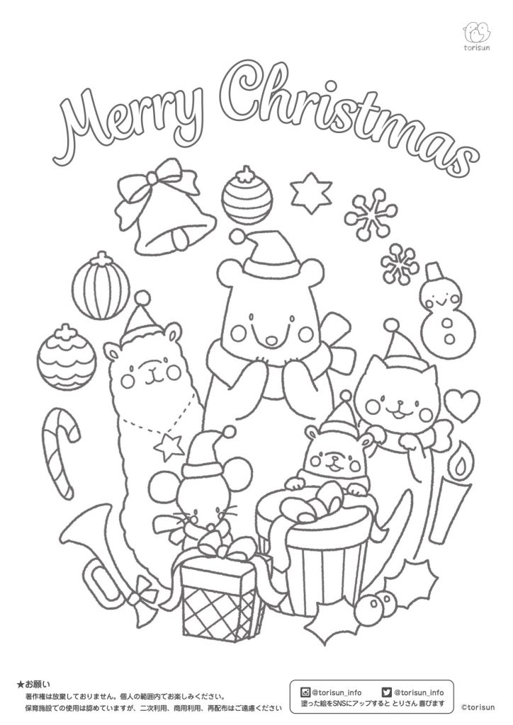 クリスマスなどうぶつぬりえ