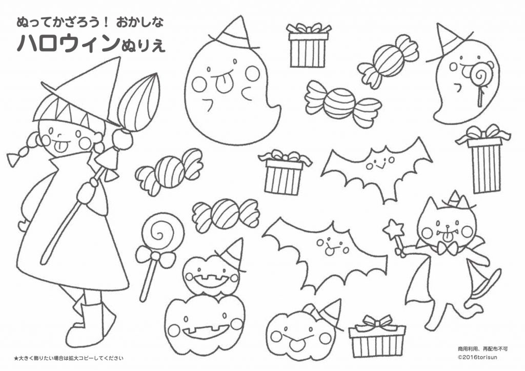 塗って飾れる おかしなハロウィンぬりえ