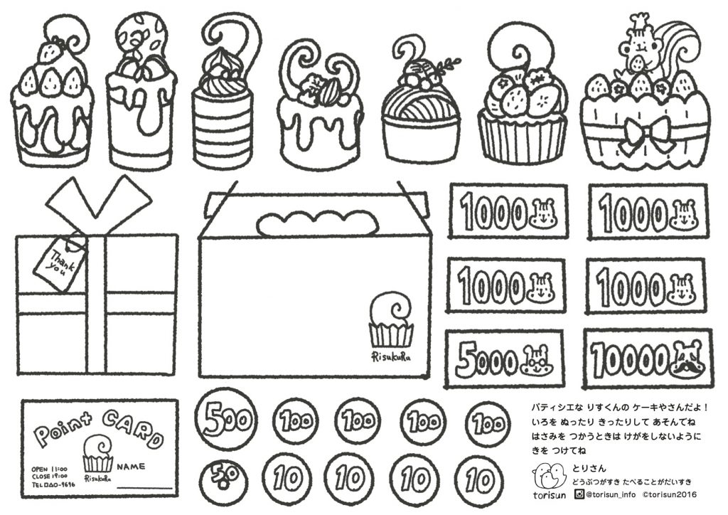 りすくんのケーキ屋さん お店ごっこぬりえ